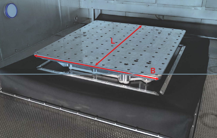 - Maximum acceleration (loaded): depends on test specimen mass